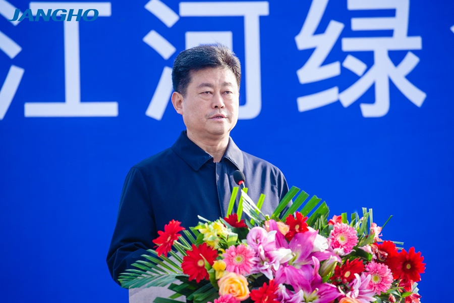 馬保嶺書記在致辭中表示,去年11月,江河集團分別與濟南市和章丘區簽署了戰略合作協議。一年來,各項工作正在有序實施,今年5月,作為江河集團北方大區總部基地的江河未來城舉行了奠基儀式,聚力打造具有全國影響力的產城融合示范區。今天,江河綠色智能制造中心開工奠基,進一步深化雙方合作,實現共贏發展。希望江河集團加強規劃設計,加快項目建設,把綠色智能制造中心打造成高標準、高水平的樣板項目。章丘區將繼續做好各項服務保障工作,以優質、高效、精準的服務,助力企業發展,共創美好未來。